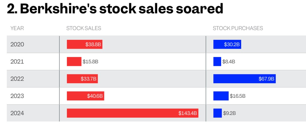 Buffett has always been clear that he prefers owning great businesses over holding cash. Yet, despite that, Berkshire sold more stocks than it bought for the ninth straight quarter in Q4 2024. In total, Buffett dumped $143 billion worth of stocks last year, including reducing stakes in Apple, Citigroup, and Bank of America. On top of that, he has been saving most of the truck-loads of cash generated from his stable dividend-focused investments and insurance businesses.