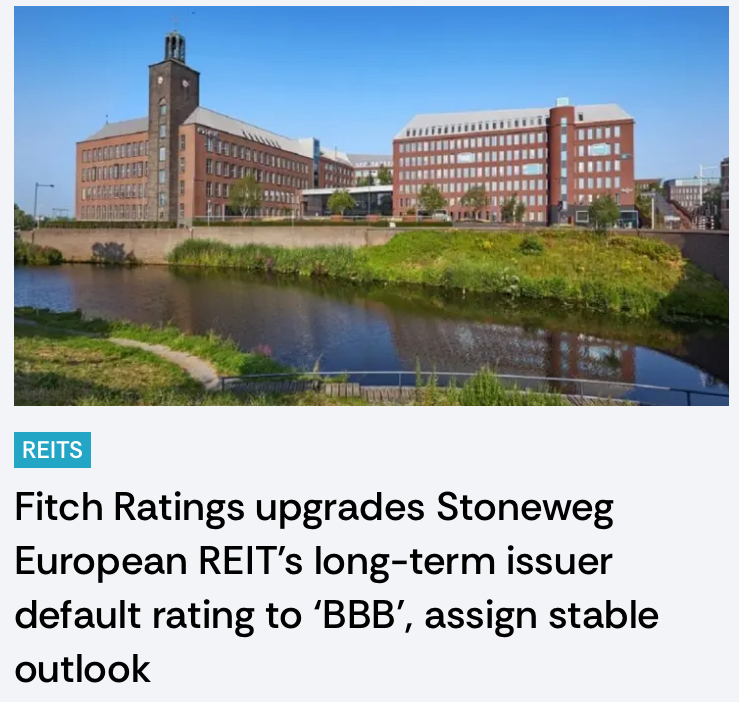 Now this one might not look exciting on the surface, but hear me out. Like most of you, I usually tune out when I hear about credit rating upgrades — they often don’t move markets. But what got me excited this time are the reasons behind Fitch’s upgrade of Stoneweg European REIT — because they reflect real progress since the change in sponsor.