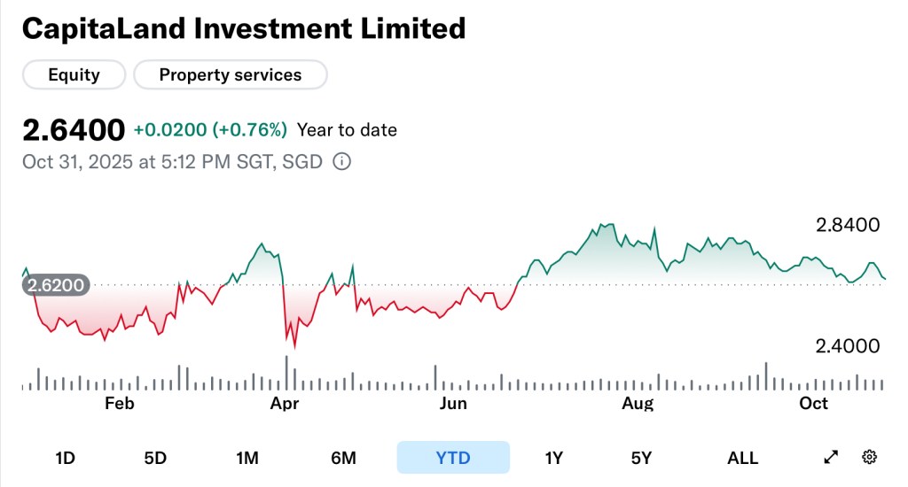 But here’s the interesting part: despite being such a central player in Singapore’s REIT ecosystem, CLI’s share price has barely moved this year. Year-to-date, it’s up only about 1%. Compare that with other blue chip stocks and REITs in Singapore — many of them have re-rated upwards as interest rates came down. For instance, SingTel is up almost 40%, while Keppel Corp is up almost 50% year-to-date. CLI, on the other hand, feels overlooked.