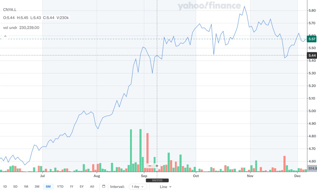 First, there’s the macro lift. China’s growth picture in 2025 has looked more stable than many expected, with policymakers leaning into support for the real economy and signalling continuity around structural priorities. That macro stabilisation has helped domestic sentiments, which similarly propelled the CNYA ETF into top spot.